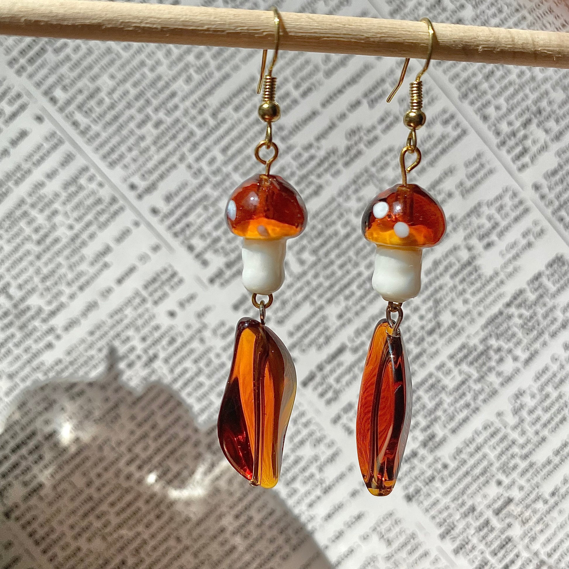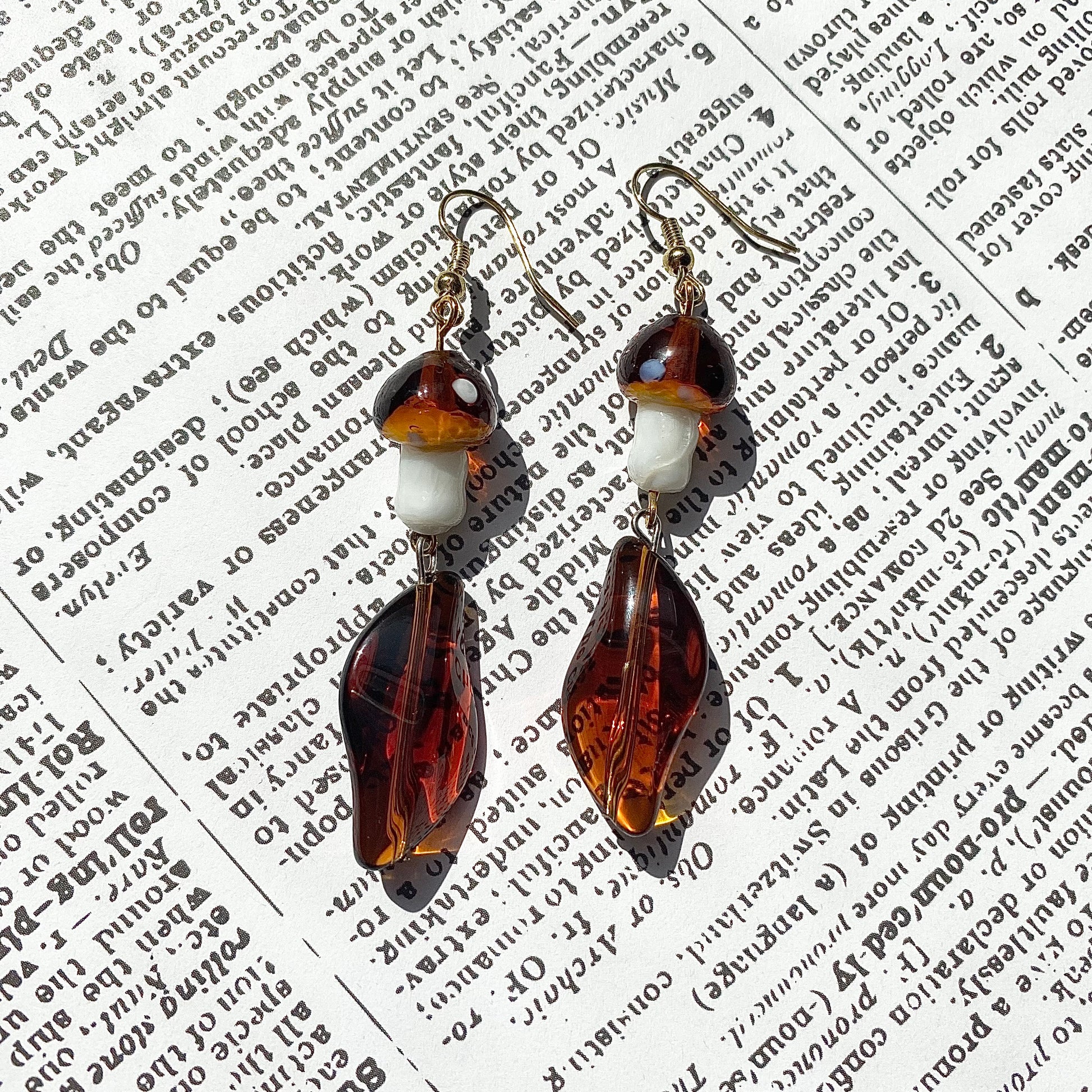 Beautiful sun catching mushroom earrings that are perfect for the upcoming fall season, but don’t rush, enjoy the summer.