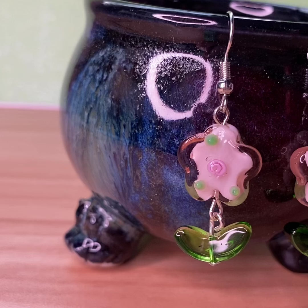 Cute and Dainty earrings with a light pink and green color combo. Just as light as any fairy